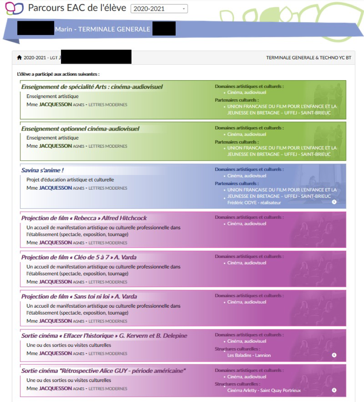 Suivre le parcours EAC d’un élève