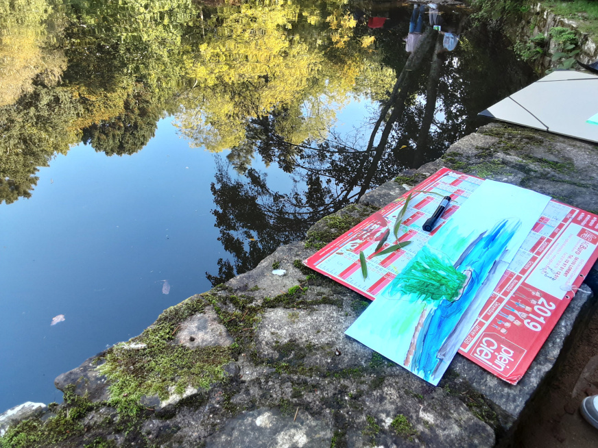 En amont de la résidence, les enseignantes ont organisé une première rencontre de pratiques artistiques entre les trois établissements au Parc de Kerbihan à Hennebont. Les élèves ont représenté la nature au moyen de différents ateliers avec des outils traditionnels et numériques. Les objectifs étaient de leur faire voir et percevoir ce qui les entoure. Observer, pour comprendre et apprendre. Et enfin collaborer, verbaliser collectivement, être en empathie à travers la pratique du dessin sur le motif.